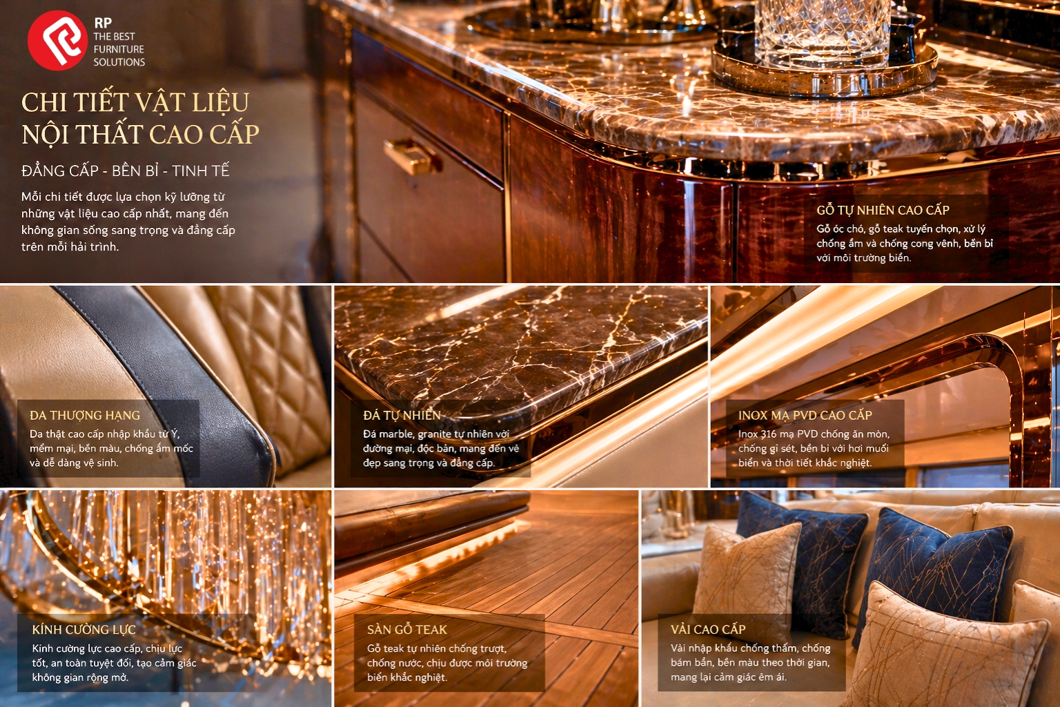 RP Furniture lựa chọn vật liệu nội thất thượng hạng chuyên dụng cho môi trường hàng hải